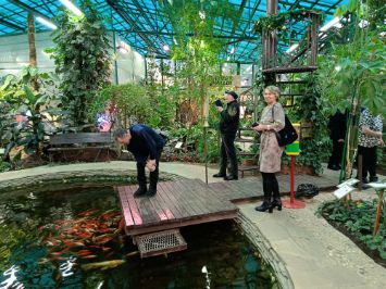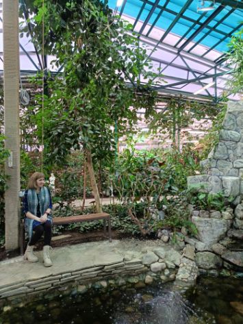 В ботаническом саду много разных цветов и зон, где можно сделать красивые фотографии: на мостике, на качелях, а также различные новогодние фотозоны.