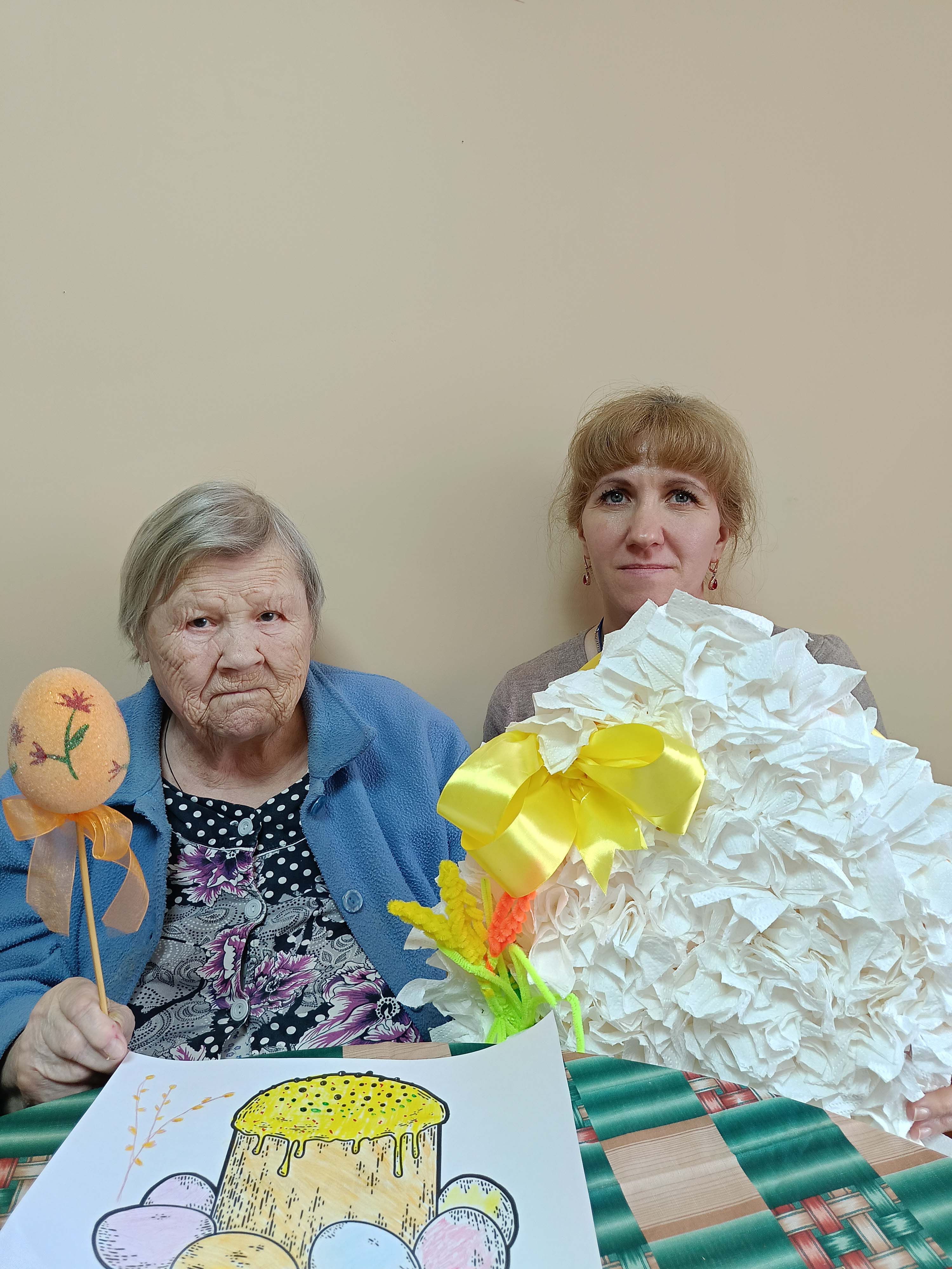В рамках индивидуальной работы изготовили изящные композиции с вербой — символом весны и возрождения. Готовые работы подарили проживающим, каждый получил частичку праздничного тепла и заботы.